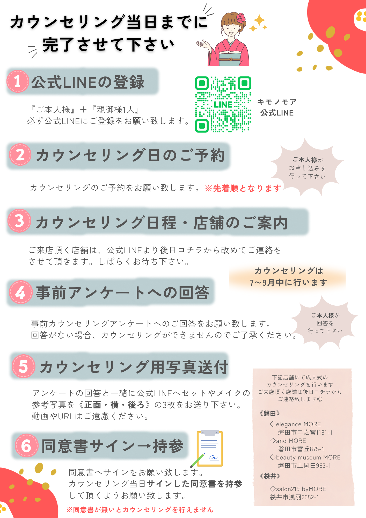 当サロンでは、主に公式LINEを使用して成人式までのやり取りを行わせて頂きます。