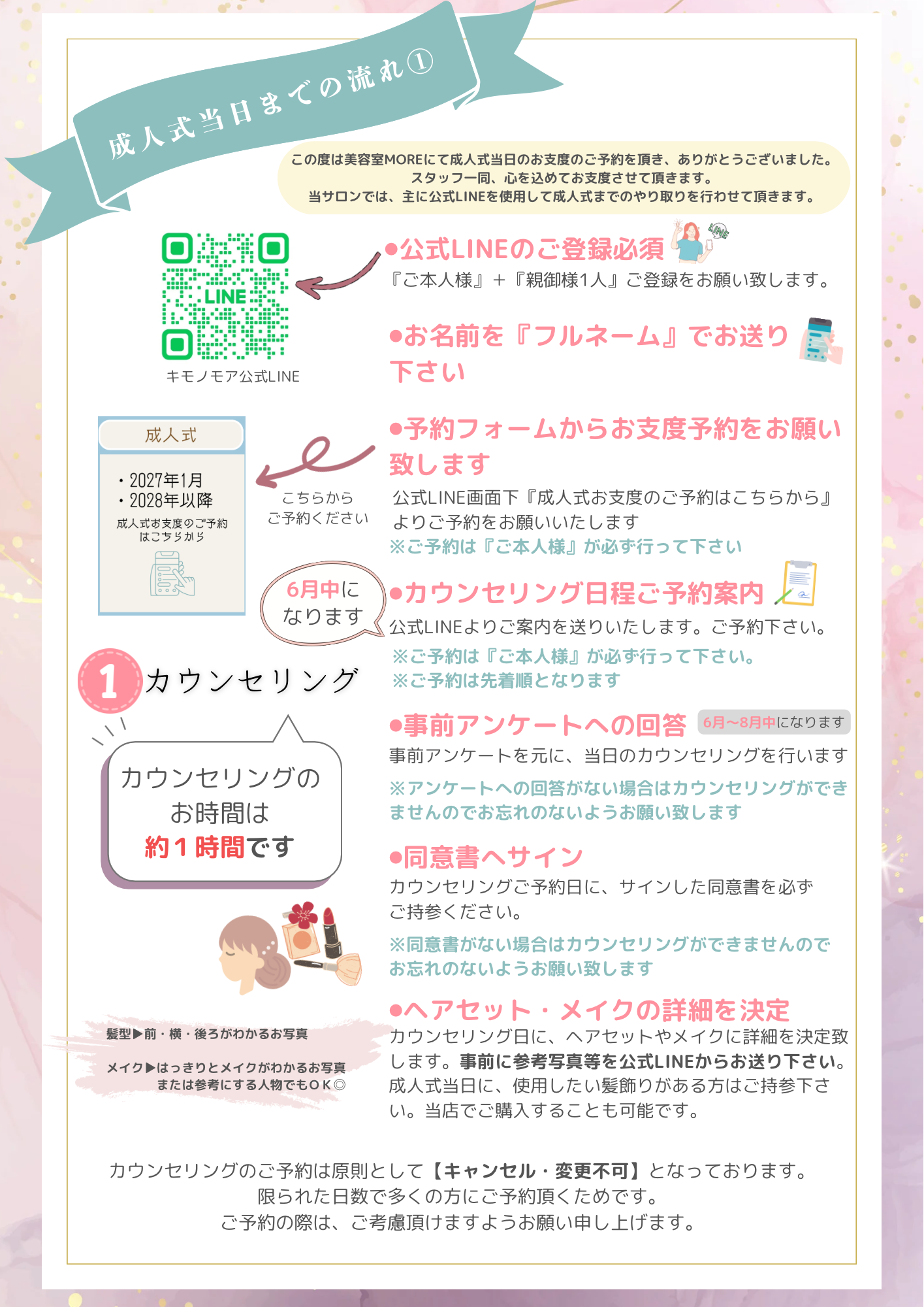 この度は美容室MOREにて成人式当日のお支度のご予約を頂き、ありがとうございました。